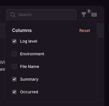 You can toggle the visibility of the Environment and File columns by clicking the eye icon in the top right corner of the table.