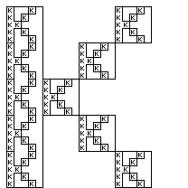 ×5 (pronounced Times Five) is a simple typeface, constructed from a 5 by 5 grid of squares. This concept is far from new: seasoned Web designers will remember Kottke’s Silkscreen, but examples can even be found in Bauhaus-era tiles. What makes this version different/special, is that the grid is used recursively to construct more complex structures. These structures are self-similar, and behave like fractals in that sense.