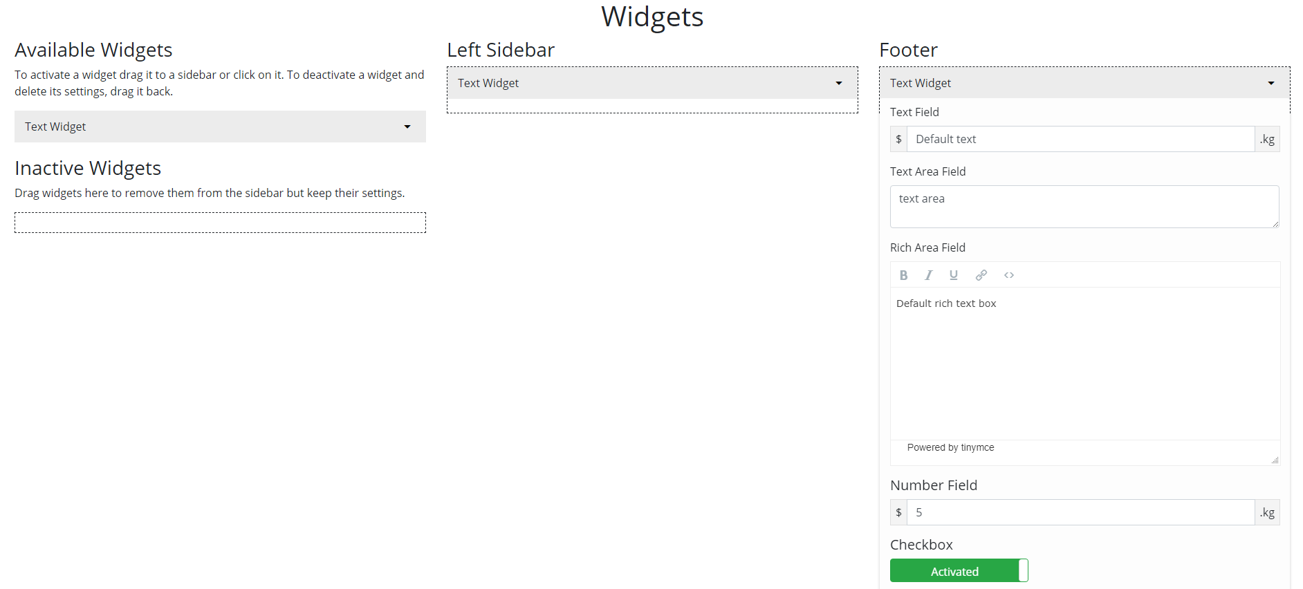 assets update php artisan vendor:publish --provider="Akopean\widgets\WidgetServiceProvider" php artisan vendor:publish --force --provider="Akopean\widgets\WidgetServiceProvider" --tag="config"