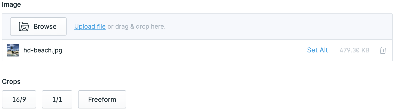 cropsis a reference (or "handle") to your specific Image Cropper setting. Remember, you should replace crops with whatever name you've given to your Image Cropper field.16_9indicates the aspect ratio for the crop. In this case, it's set to 16:9, which is a common widescreen format. You can change this to any other ratio you need for your image.