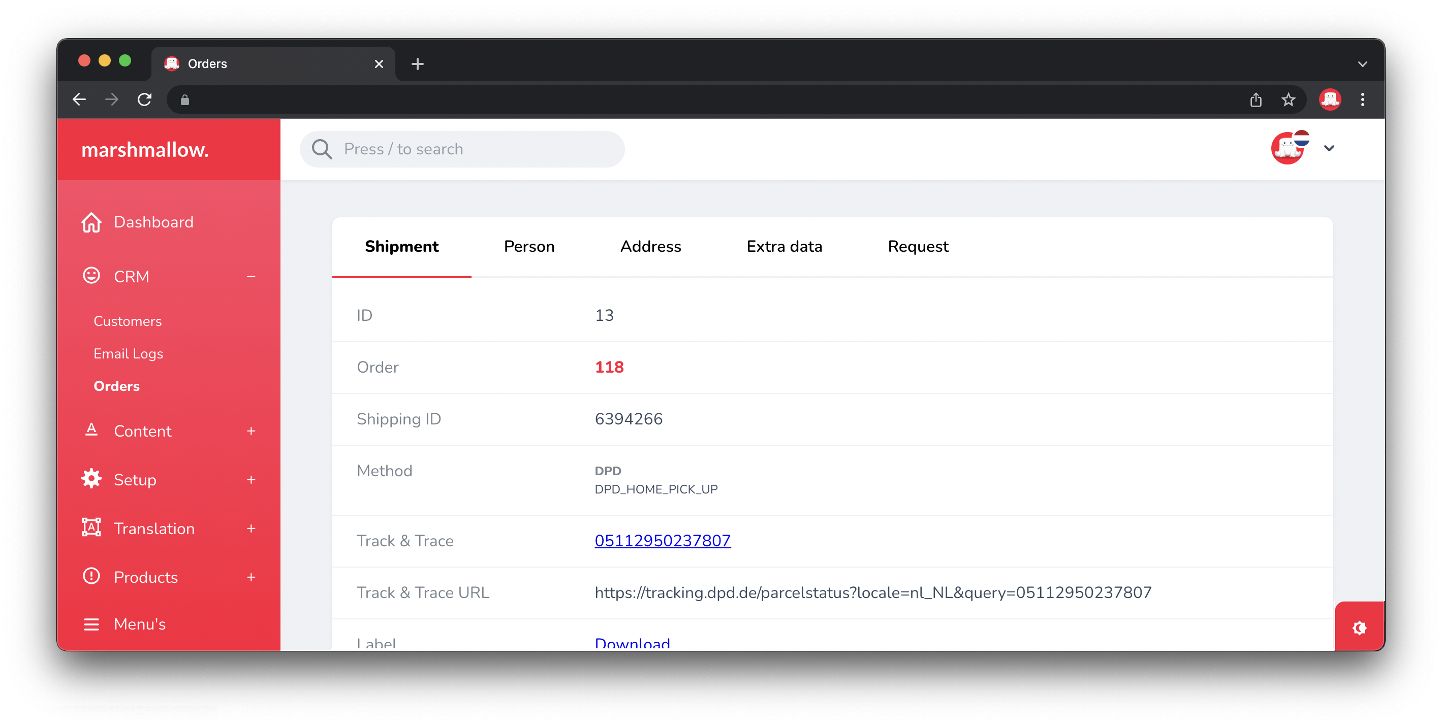 With this action you can download the label of a shipment. It is also possible to download the shipping labels of multiple orders at once.