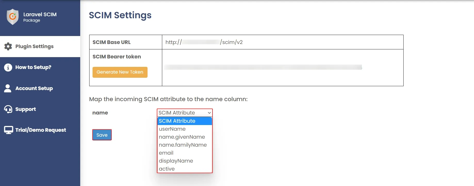 In the name field, select the SCIM Attribute from the dropdown the SCIM attribute you want to map with name column of your laravel user table.