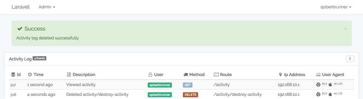 | Activity log can be cleared, restored, and destroyed using eloquent softdeletes |